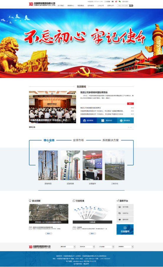 博达软件对中国西电集团的网页进行全面改版设计,整体设计去繁就简,凸显企业经营理念和企业文化建设,应用现代简约设计,体现官方、权威、国际化和科技感。设计主色以企业红和科技蓝为主导色,辅以现代简约黑灰白色系,衬托出企业文化和企业科研属性。网站分为“首页”、“关于我们”、“新闻中心”、“党的建设”、“业务板块”、“上市公司”、“信息公开”七大部分。